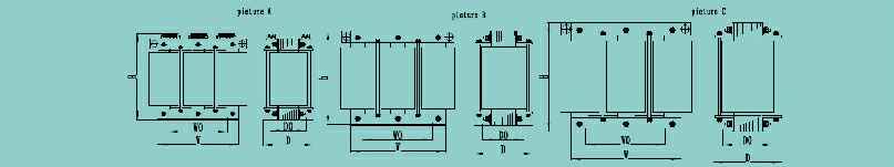 三相隔离变压器型号 图号 逆变器功率(KW) 额定输出电流(A) 三相输入电压 三相输出电压 变压器效率 重量